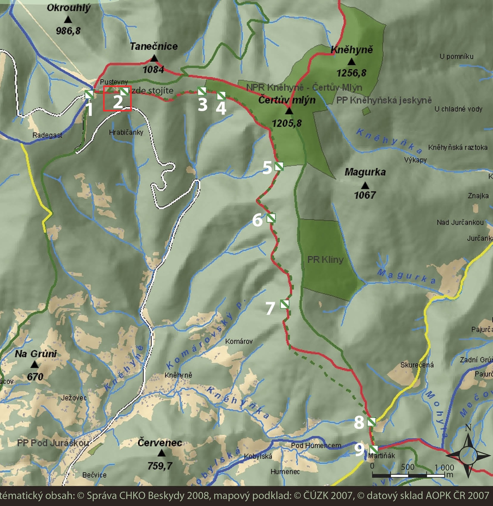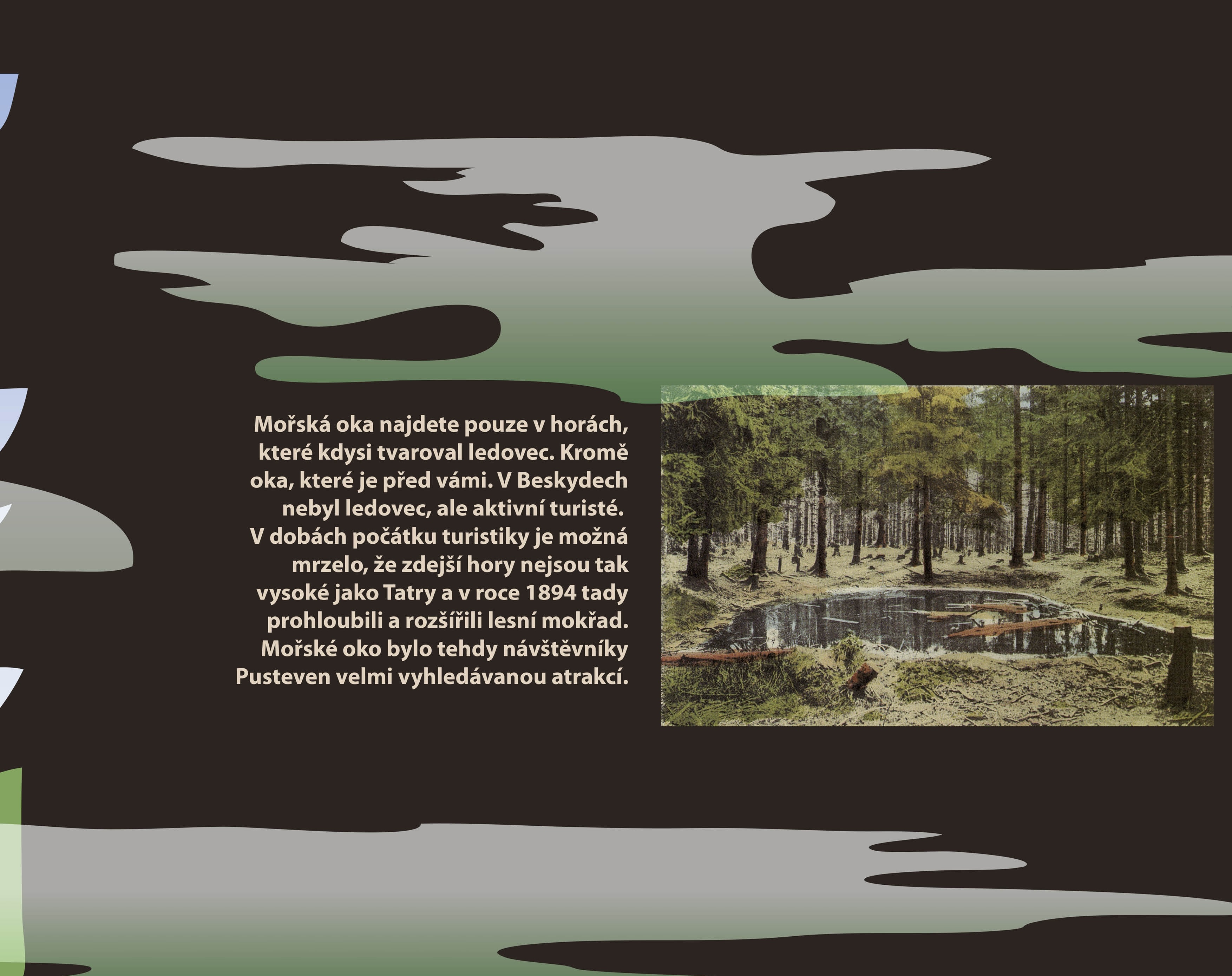 Pohodlná trasa s 9 zastaveními z Pusteven až k rozcestí nad chatou Martiňák. Stezka je galerií obrazů a vede k zamyšlení nad tím, jaké jsou Beskydy hory a v čem jsou tak odlišné a výjimečné oproti jiným pohořím v České republice.